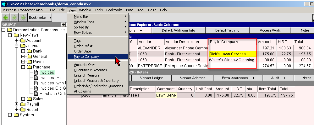 A column Pay to Company can be added to the Accounts Payable journal. This allows selections from the Extra Addresses list.