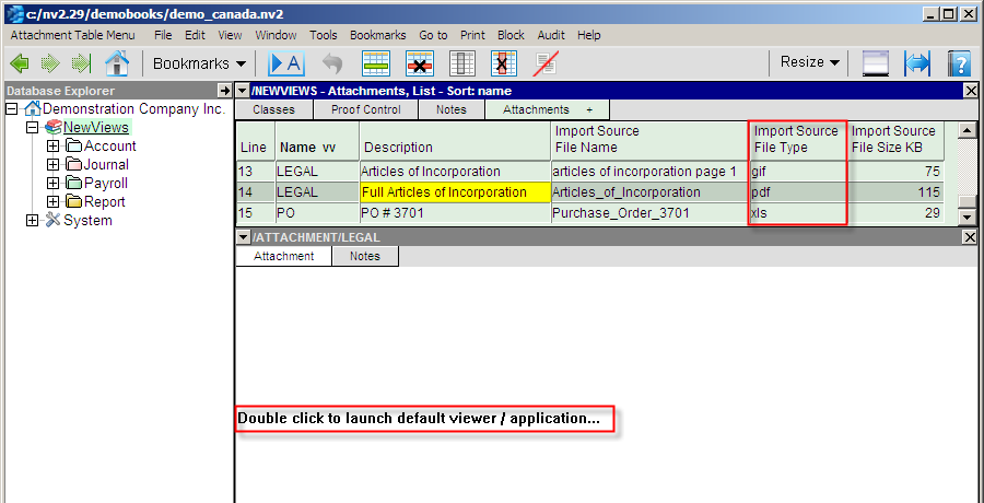 When you double click, NewViews will open the appropriate application so you can view the attachment.