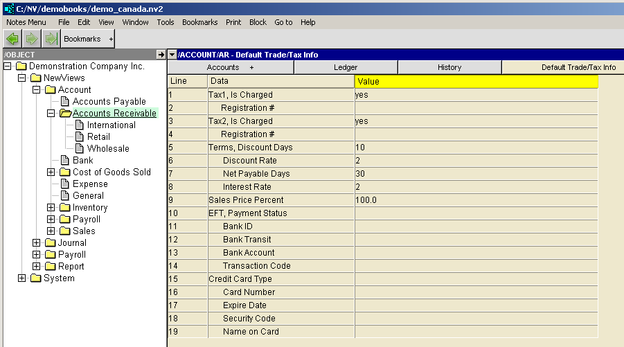 | Sales | 9 | Price Percent | This is an adjustment to the fixed sale price on an item for a particular customer. A multiplier is applied against the standard sale price of an item. For example, to give a specific customer a 5 percent discount, set this field to 5 on that customer's trade/tax settings. If you were to enter 5 percent in the root customer account, i.e. /ACCOUNT/AR, then all customers inherit the value and have a 5 percent discount unless they override the value. |