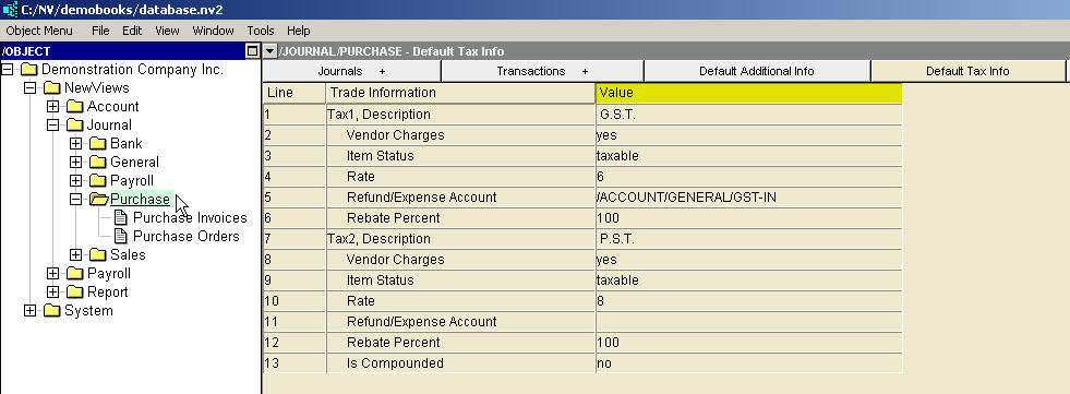 Click NewViews/Journal/Purchase in the NV2 Database Explorer.