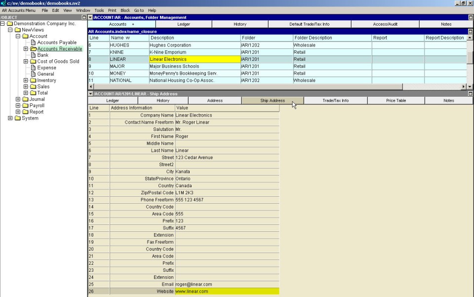If the window tabs are not visible click the window list button at the left of the title bar, expand the account folder and choose Shipping Address.