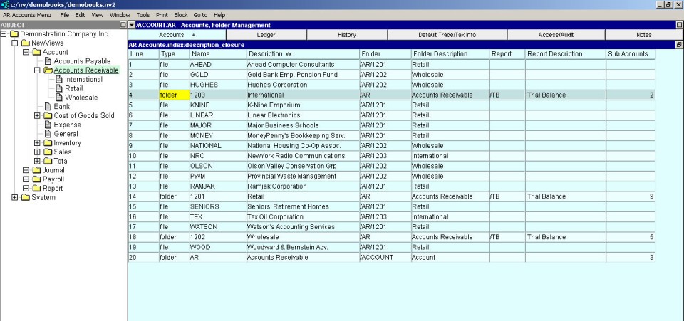 Any type of account can have an unlimited number of sub-accounts. This ability is extremely useful, and allows you to organize accounts of the same type into different folders. You might, for example, add several journals of type ACCOUNTS PAYABLE - one to record US Accounts Payable, another to record Canadian Accounts Payable, and so on.