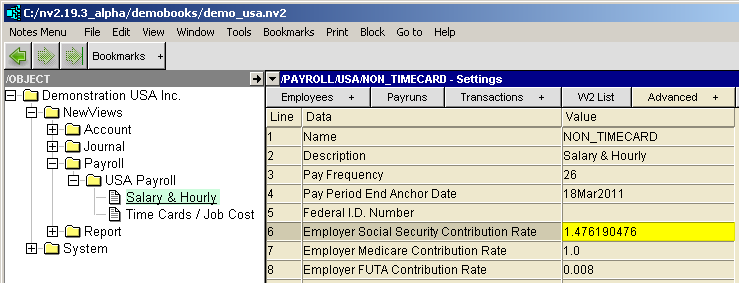 | 6 | Employer Social Security Contribution Rate | This specifies the contribution rate at which the employer Social Security contribution are calculated. This is set to 1.476190476 in most cases. See below If you do not want payroll to calculate the Social Security contribution on each paycheck (you will do it manually) set this field to "0". |