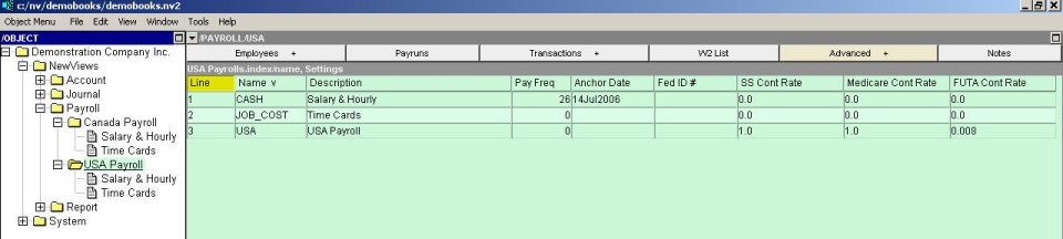 Click on NewViews/Payroll/USA Payroll in the NewViews Database Explorer.