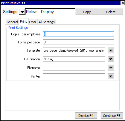 Print the employees' (2) copies and the government's (1) copy: Set "Copies per employee" to 3 and print all employees Releve 1s.