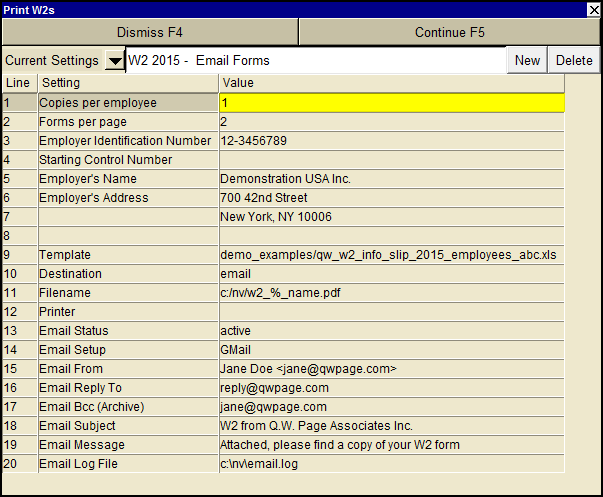 | 2 | Forms per page | This sets the number of W2 forms on each W2 page. | |