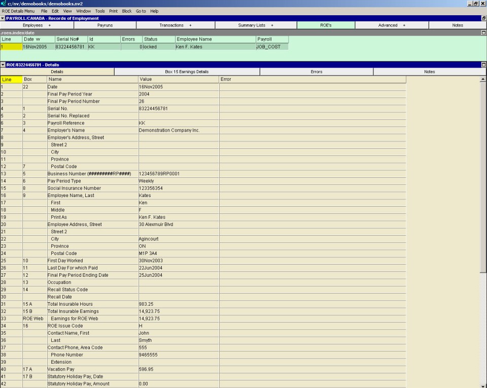 Note: You cannot create ROES on this table - ROEs must be created on the individual employee's ROEs Window.